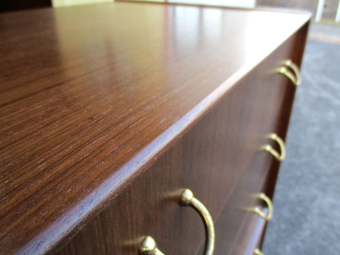 裏板、引き出し内部等を除き、ほとんどの部分の塗装を剥離し再塗装しました。わずかに小傷は残存しておりますが、全体的に美しい外観になっております。